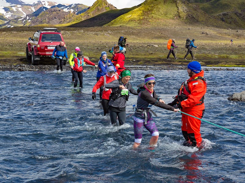 - Ef aðstæður versna á hlaupaleið og starfsstöðvum skulu starfsmenn ÍBR, FF, BFÁ og Ferðafélags Íslands (FÍ) beina þátttakendum í skjól í skálum FÍ sem eru staðsettir í Landmannalaugum og á hlaupaleiðinni inn í Húsadal.